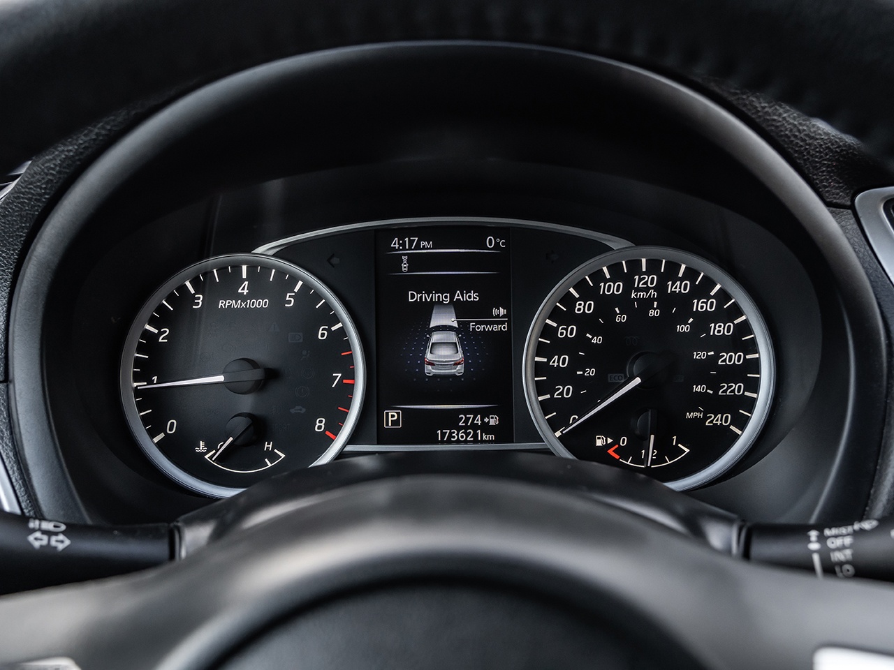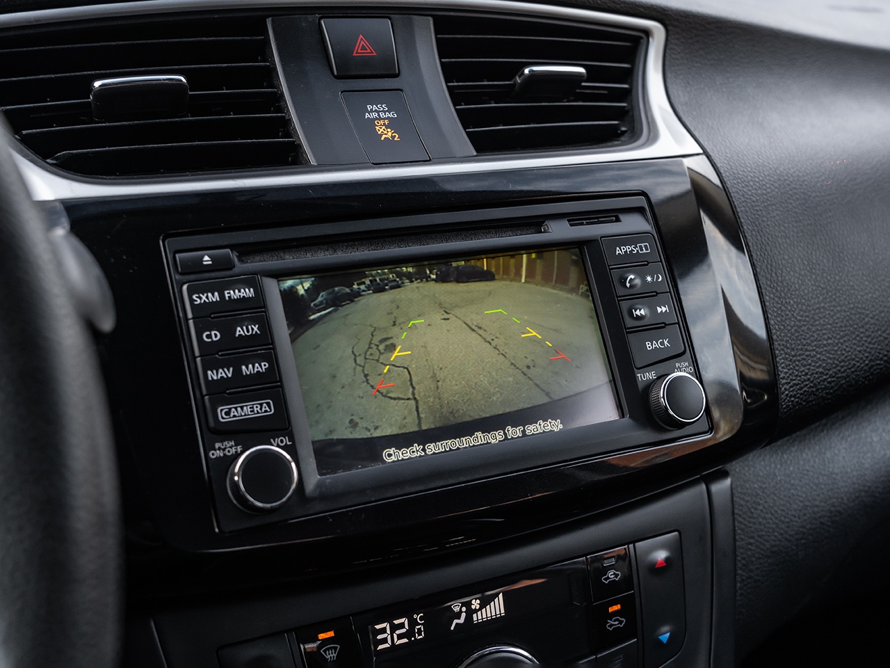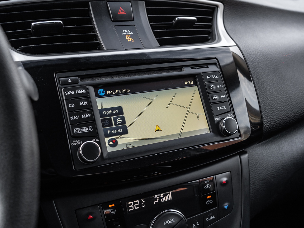 Interior high valued and standard features include Premium Cloth seating surfaces, the Nissan Intelligent Key with Push Button Ignition, a 5-inch color display audio system, Bluetooth Hands-free Phone System, a rearview monitor, dual-zone automatic temperature control, navigation, sunroof, heated front seats, and illuminated steering wheel-mounted audio controls.
